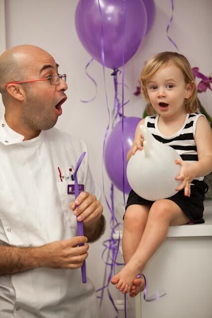 We take toddlers for a ride in our “special” chair, give them a balloon and showbag and count their teeth together. This is often enough for a first visit.